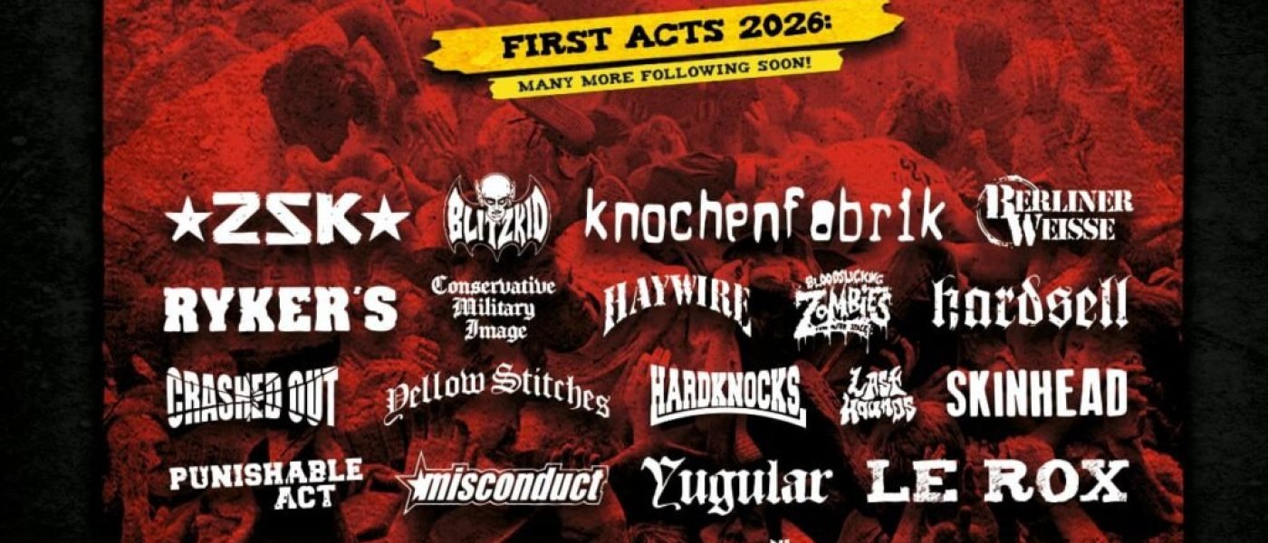 The 2026 edition features 33 artists. Headliners include THE EXPLOITED, THE ADICTS, THE CASUALTIES, and ZSK. The lineup covers a wide musical spectrum.