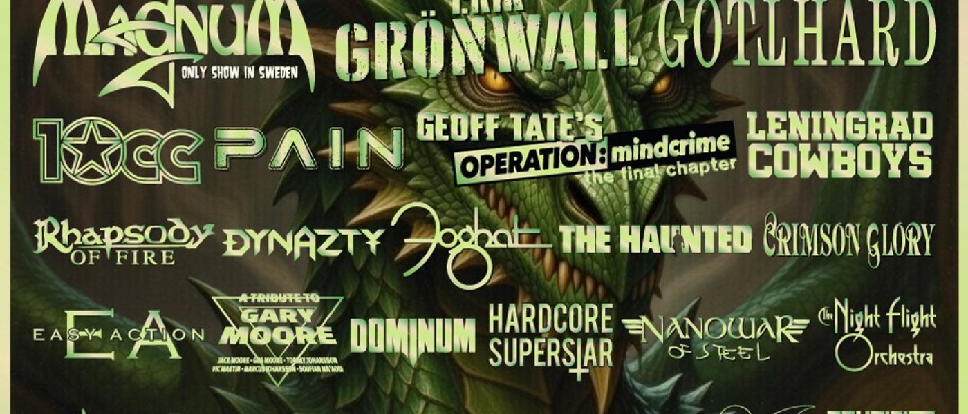 The 2026 lineup honors the pillars of Scandinavian and international rock. Swedish formations Dynazty and The Night Flight Orchestra join forces with bands like Crucified Barbara and Wolf. The local scene is represented by Easy Action, Knogjärn and The Good The Bad and The Zugly.